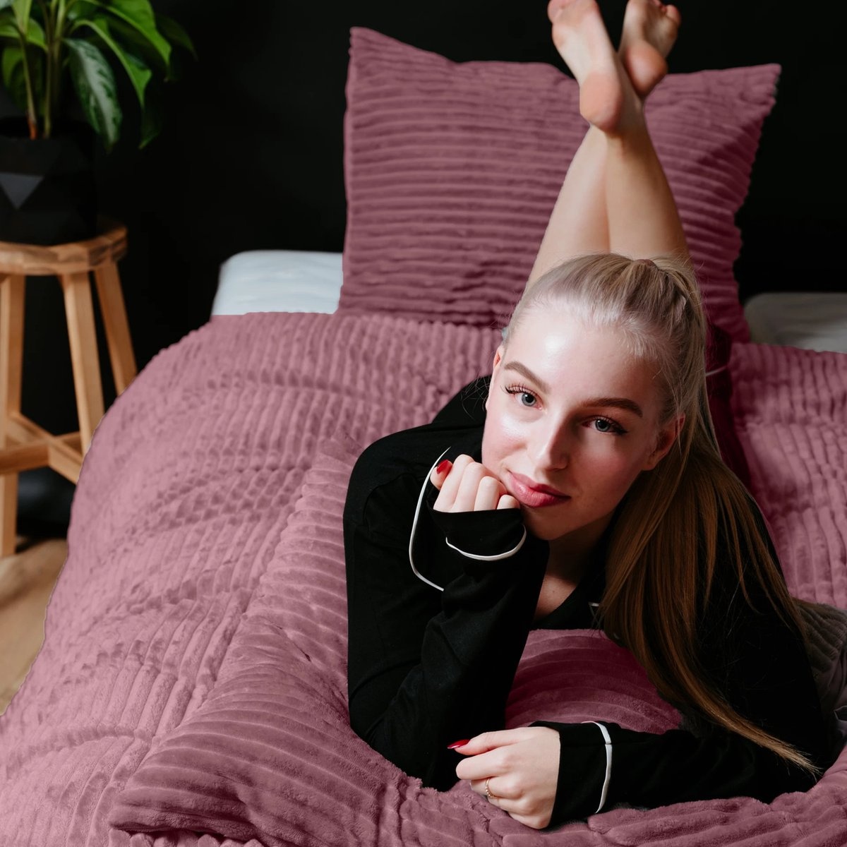Het dekbedovertrek is gemaakt van 100% hoogwaardig teddy rib polyester. De stijlvolle ribstructuur geeft het dekbedovertrek een luxe en tijdloze uitstraling. Deze stof is bij uitstek een fijne winterkwaliteit die ervoor zorgt dat je het deze winter niet koud zult hebben. Met dit dekbedovertrek ben je direct in dromenland!