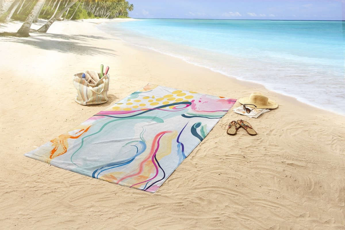 Dit strandlaken met een prachtige en kleurrijke print is gemaakt van 100% hoogwaardige polyvelours. Het strandlaken heeft een zacht laagje waardoor het zeer fijn aanvoelt op de huid. Hierdoor is dit strandlaken perfect om op te liggen en lekker goed te ontspannen.