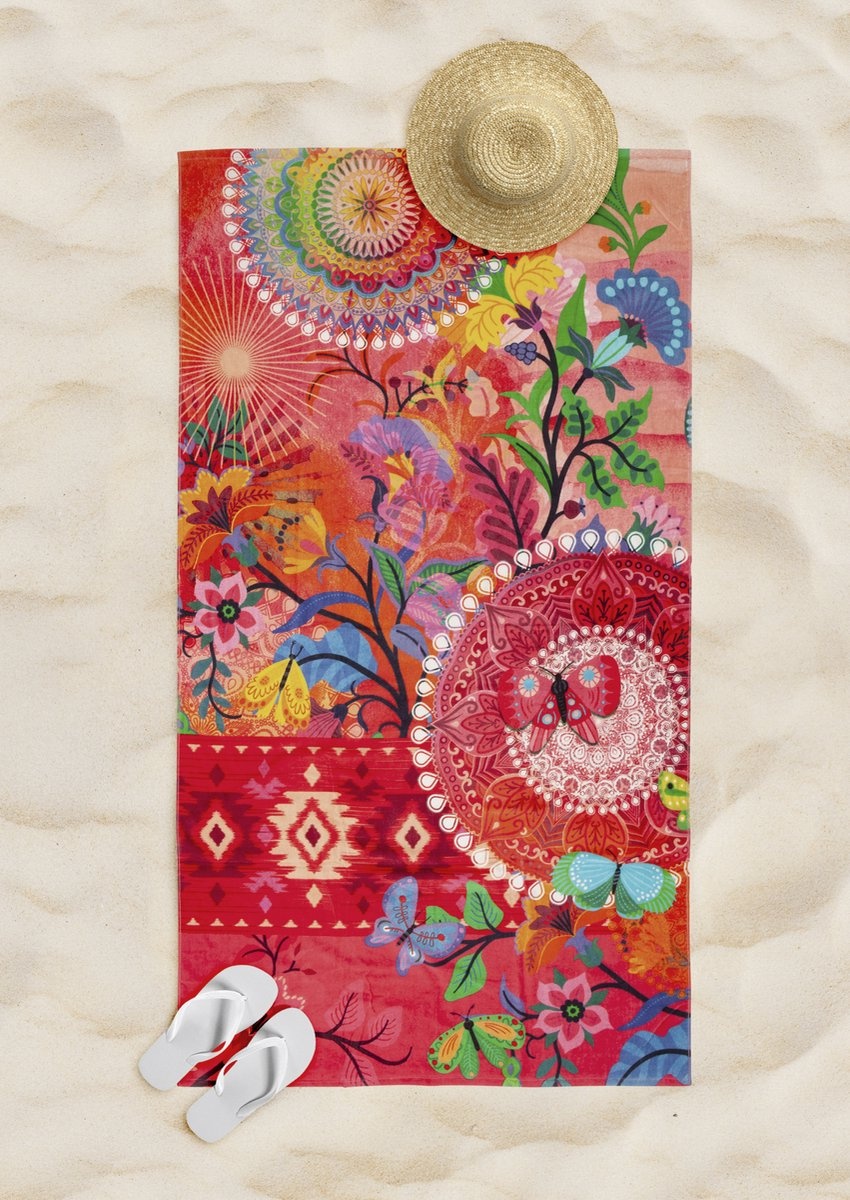 Dit strandlaken met een prachtige en kleurrijke mandala print is gemaakt van 100% hoogwaardige polyvelours. Het strandlaken heeft een zacht laagje waardoor het zeer fijn aanvoelt op de huid. Hierdoor is dit strandlaken perfect om op te liggen en lekker goed te ontspannen.
