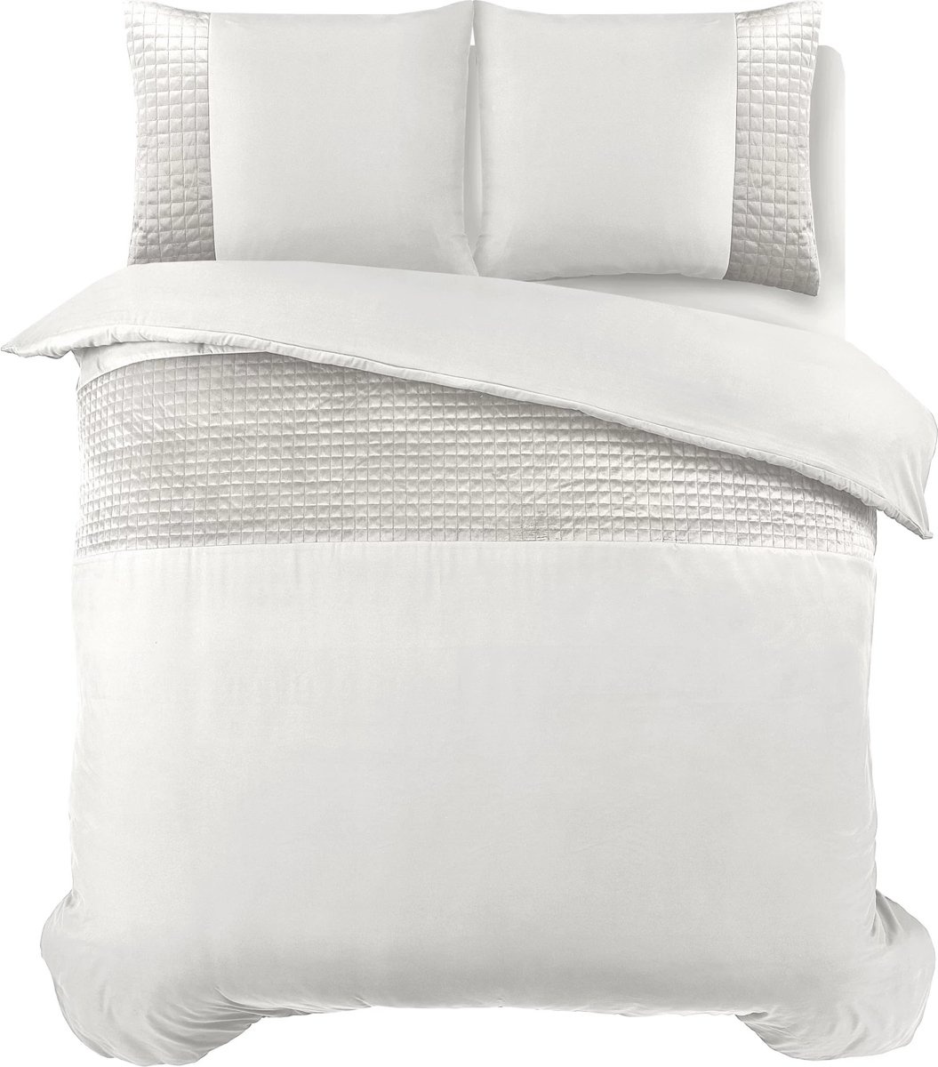 Kruip heerlijk weg onder dit heerlijke zachte en luxe dekbedovertrek met een elegante velvet strook. Op de velvet strook zijn stijlvolle blokken terug te zien die carré gestikt zijn. Maak je bed het middelpunt van de slaapkamer!