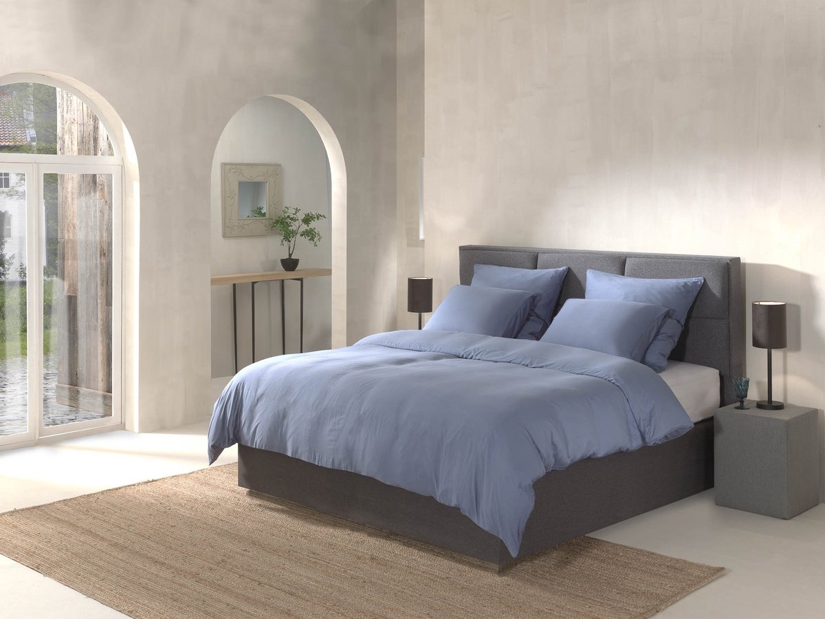 Het Yellow Dekbedovertrek Uni Blauw geeft de slaapkamer een rustige en moderne uitstraling. De diepe blauwe kleur zorgt voor een stijlvolle en ontspannen sfeer en vormt een elegante basis voor een sfeervol ingerichte slaapkamer.