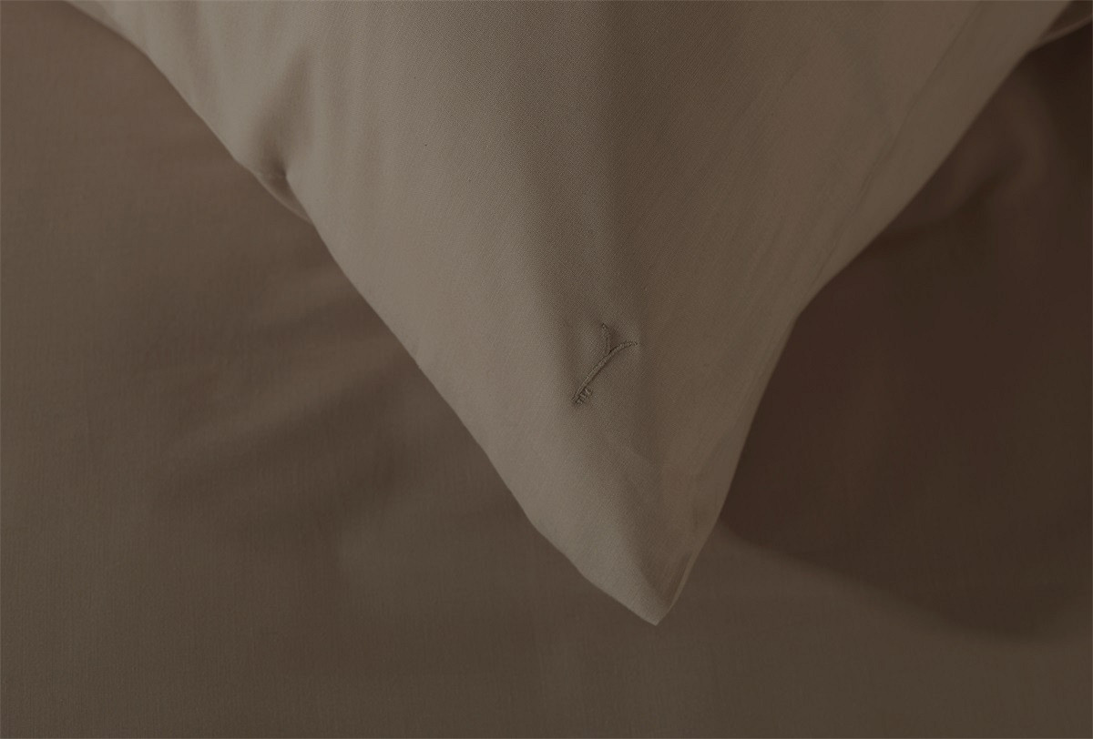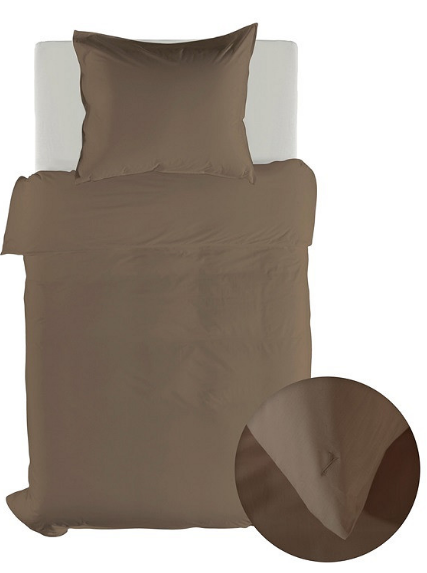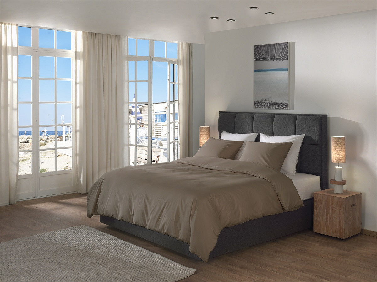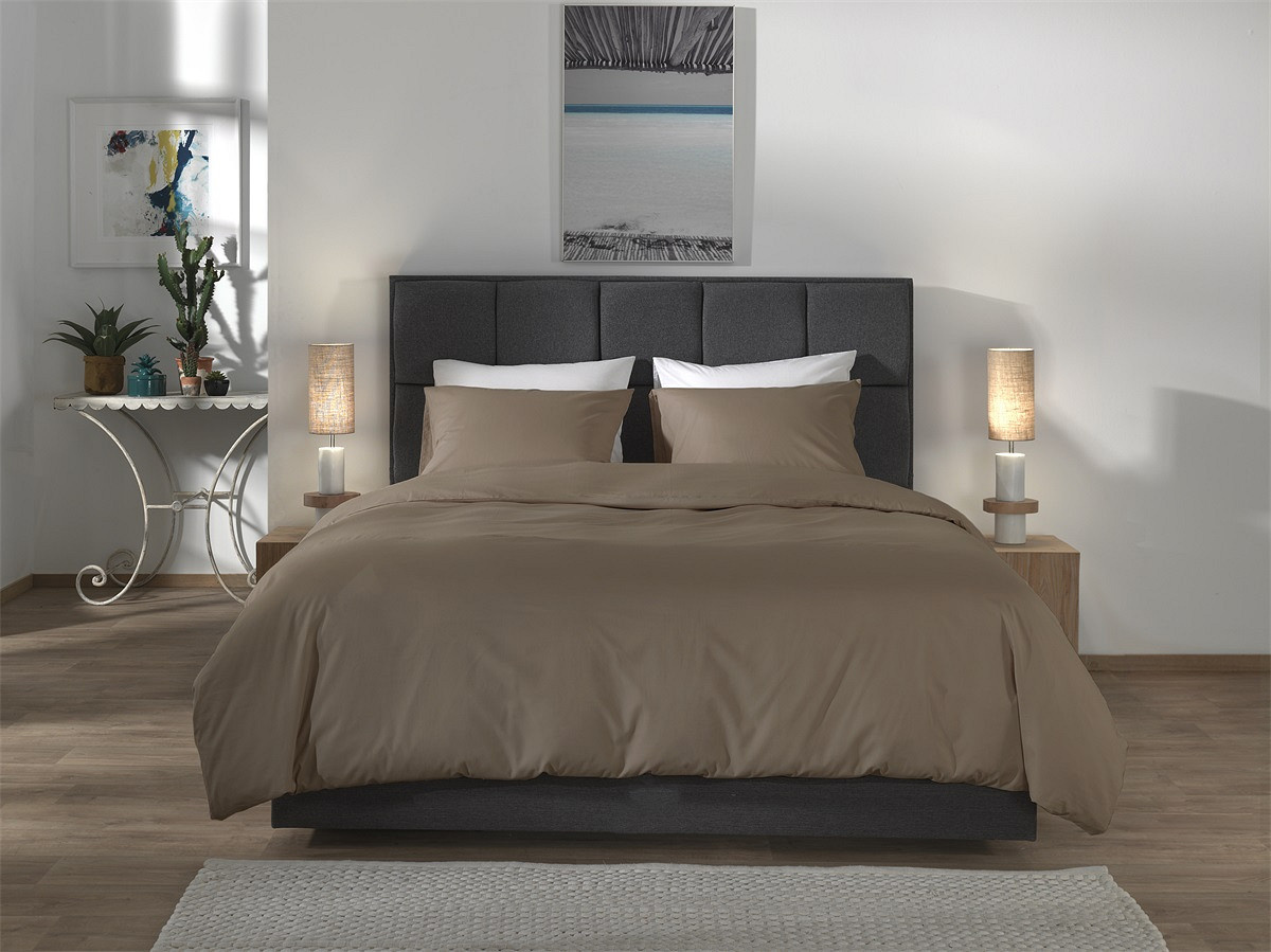 De taupe kleur geeft het dekbedovertrek een luxe en rustige uitstraling.