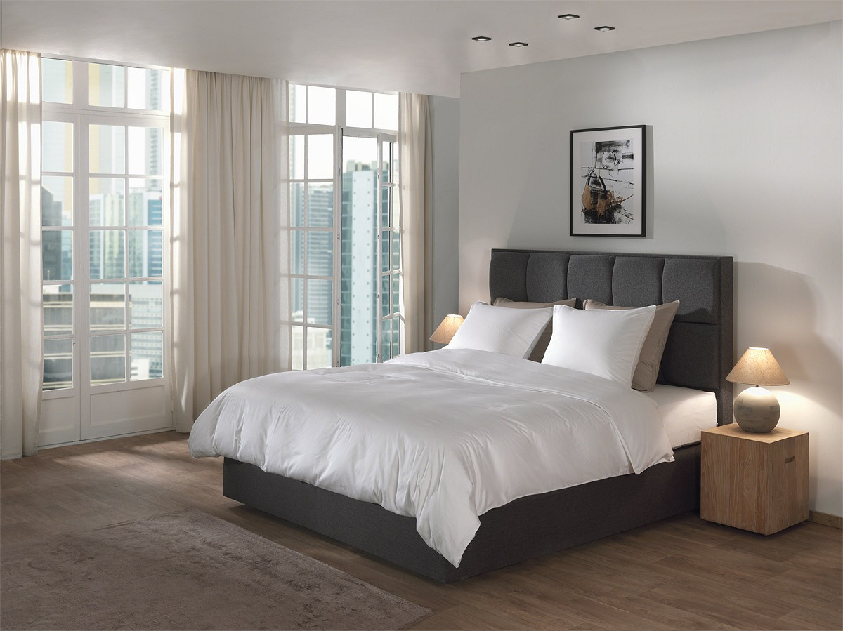 De frisse witte kleur geeft het bed een stijlvolle en rustige uitstraling. In combinatie met de subtiele glans van katoensatijn ontstaat een luxe hotelgevoel.