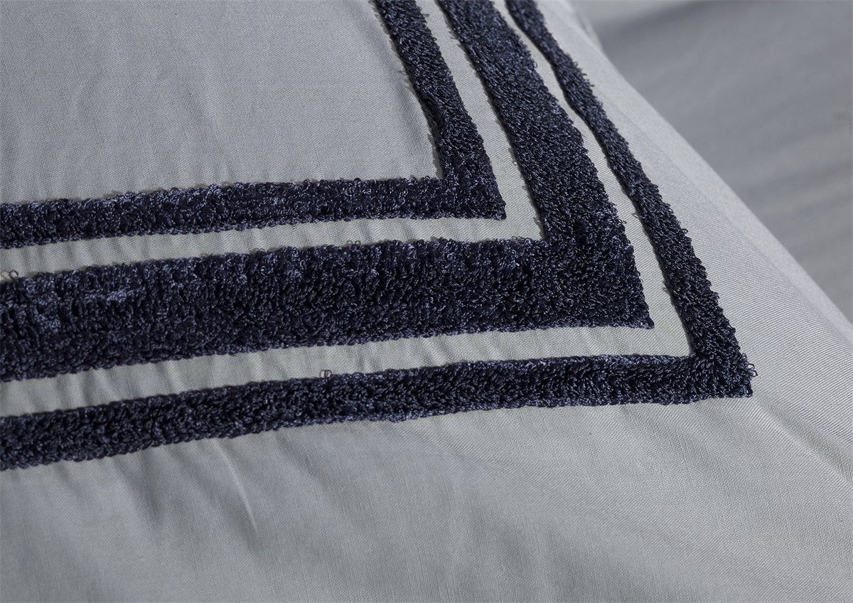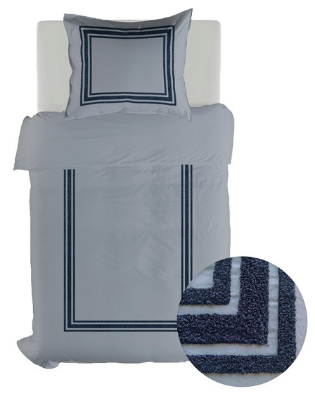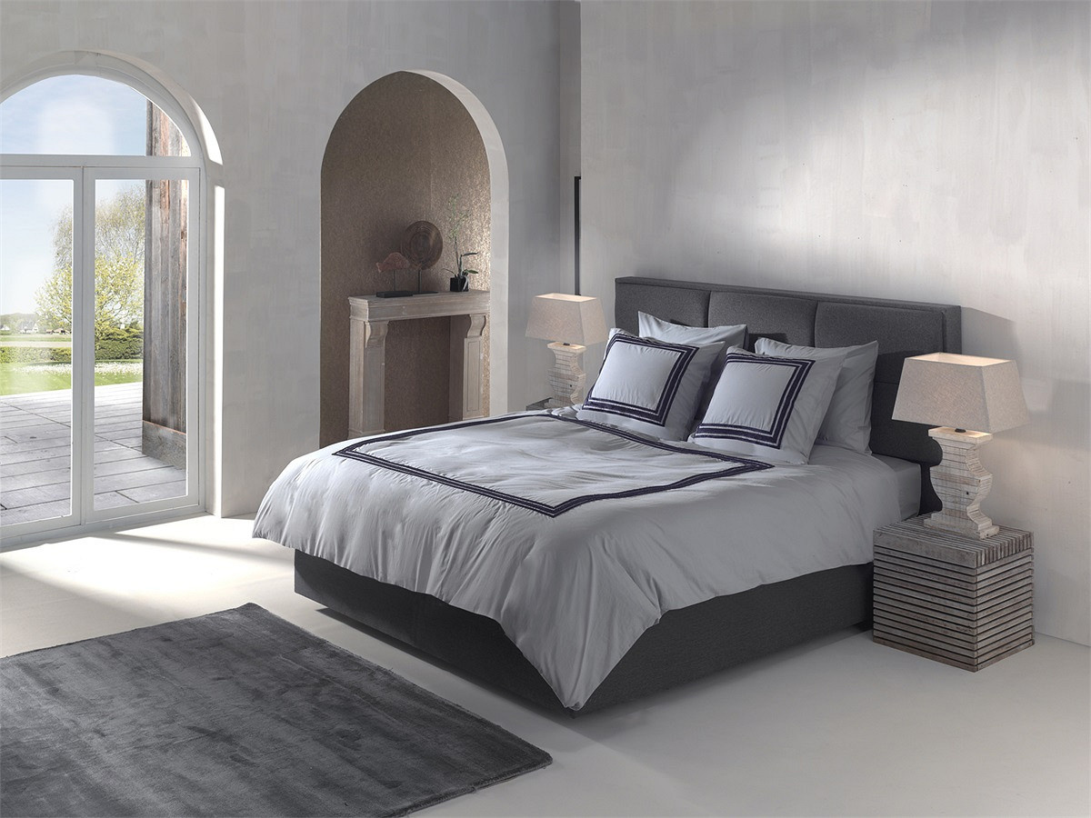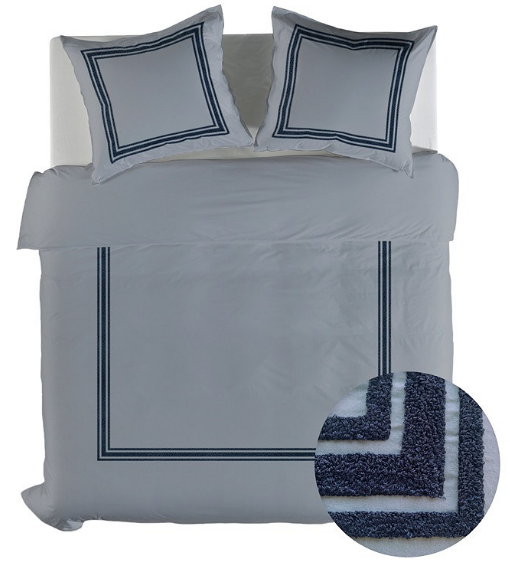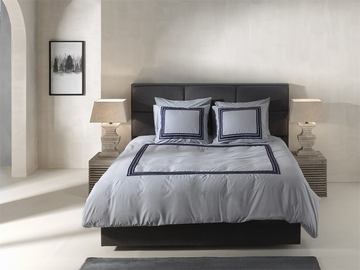 Het kenmerkende detail van dit dekbedovertrek is het ingeweven badstofkader dat rondom het dessin op het dekbedovertrek en de kussenslopen loopt. Hierdoor krijgt dit blauw dekbedovertrek een luxe en hotelachtige uitstraling.