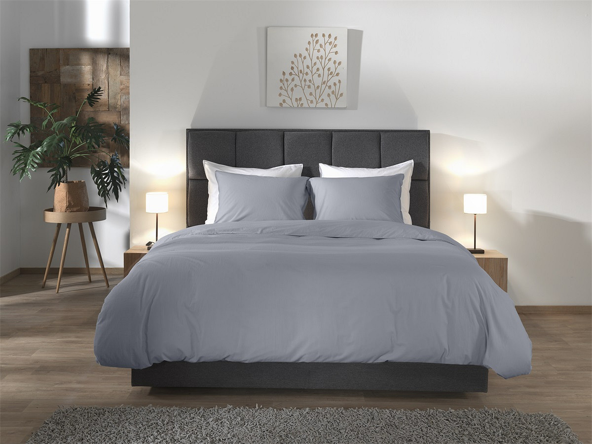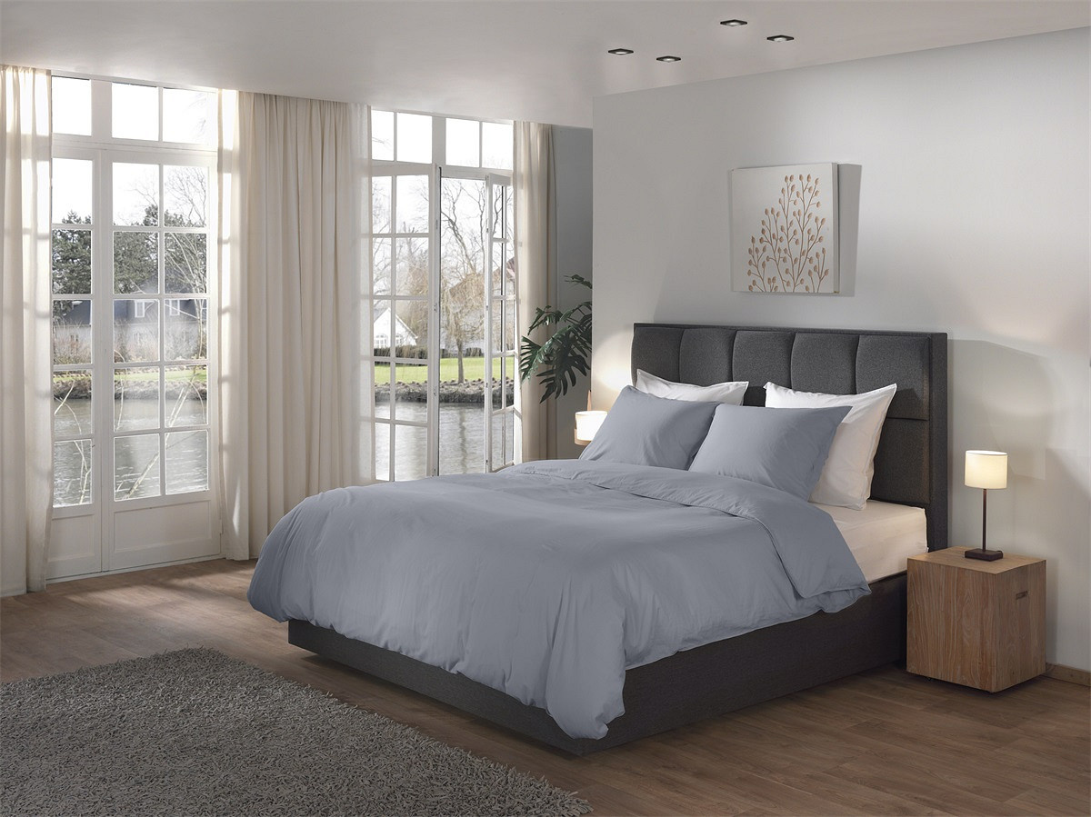 De stijlvolle blauwe kleur geeft het bed een rustige en elegante uitstraling. Dit blauw dekbedovertrek zorgt voor een sfeervolle en moderne slaapkamer.