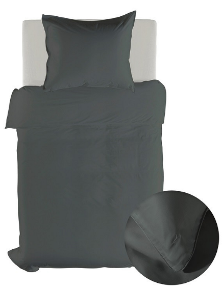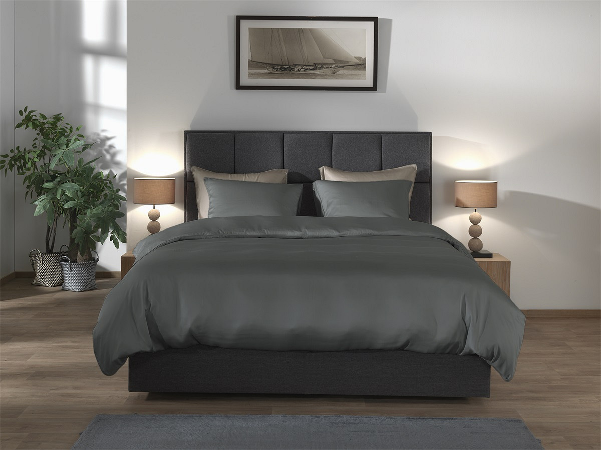 De diepe antracietkleur geeft het bed een krachtige en stijlvolle uitstraling. Dit effen dekbedovertrek zorgt voor een moderne en elegante sfeer in de slaapkamer.