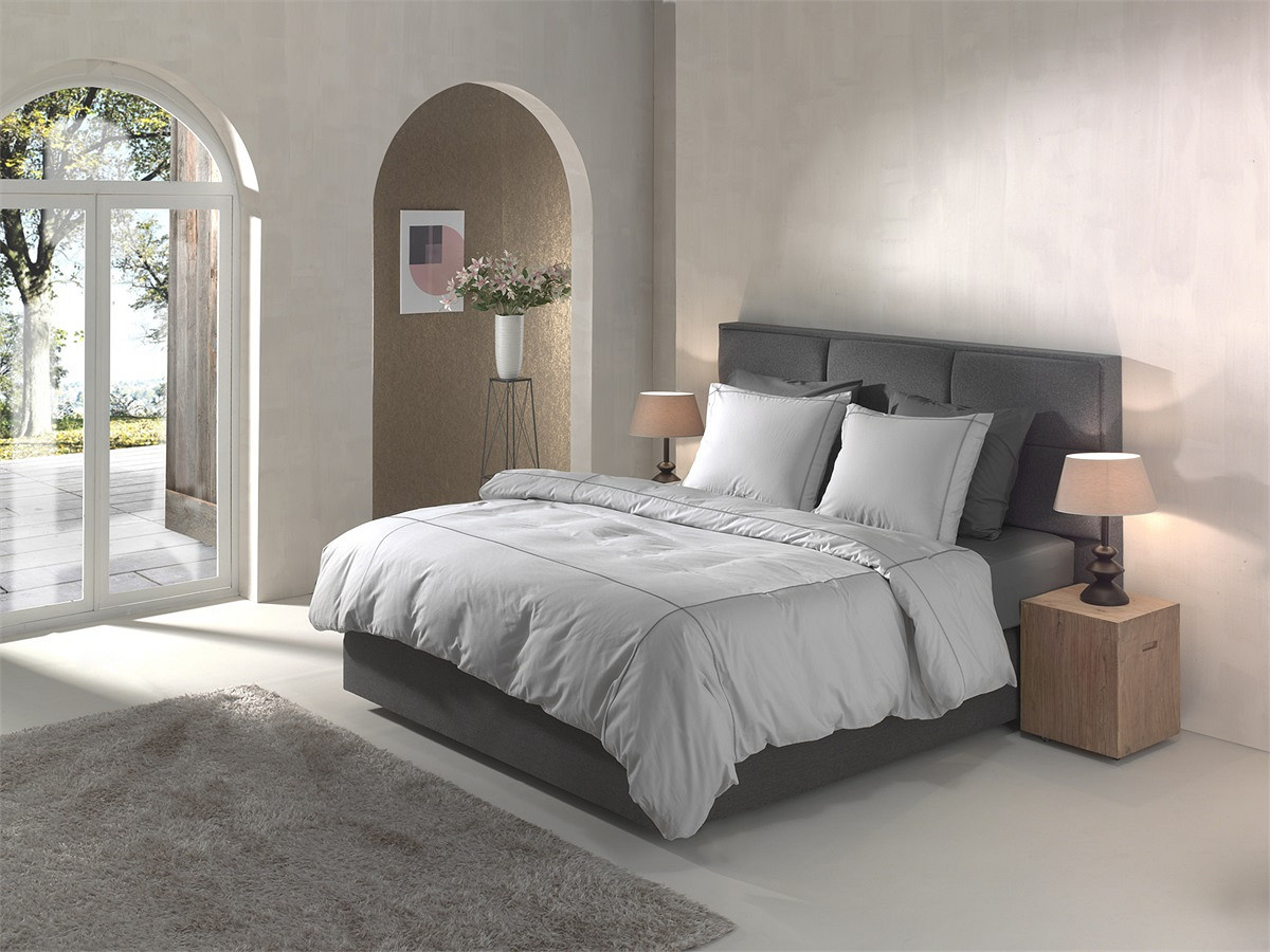 De zachte grijstint gecombineerd met de sierlijke borduurranden geeft het dekbedovertrek een stijlvolle uitstraling.