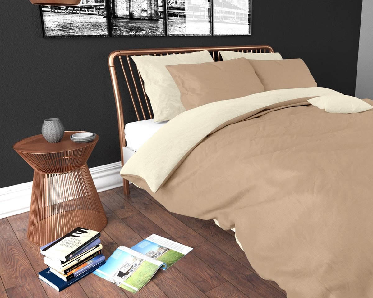 Dekbedovertrek Twin Face Uni Taupe/Creme - Microvezel