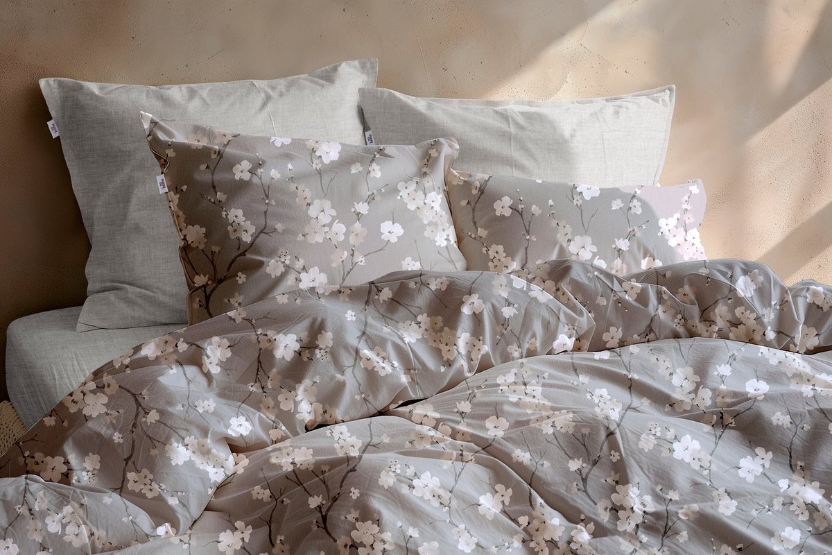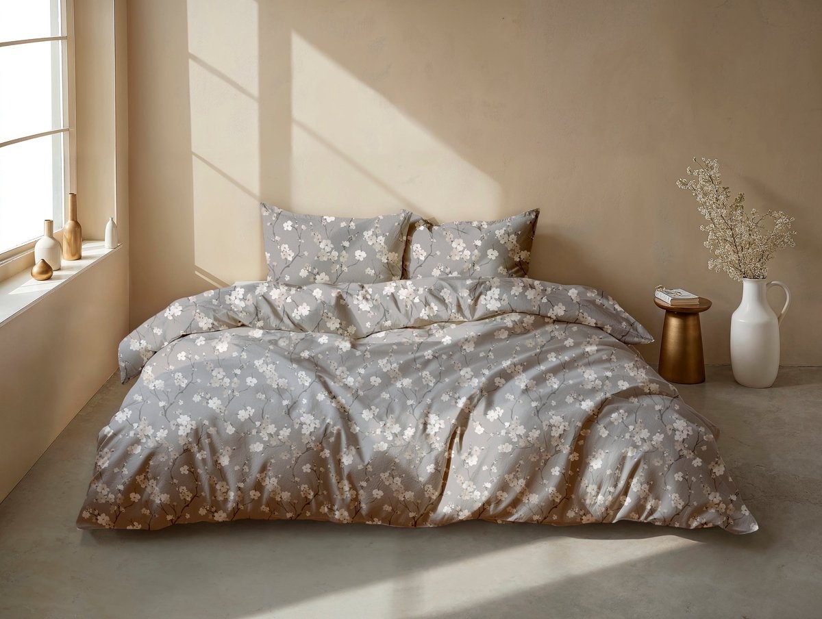 Het elegante bloesempatroon geeft het dekbedovertrek een stijlvolle en rustige uitstraling.