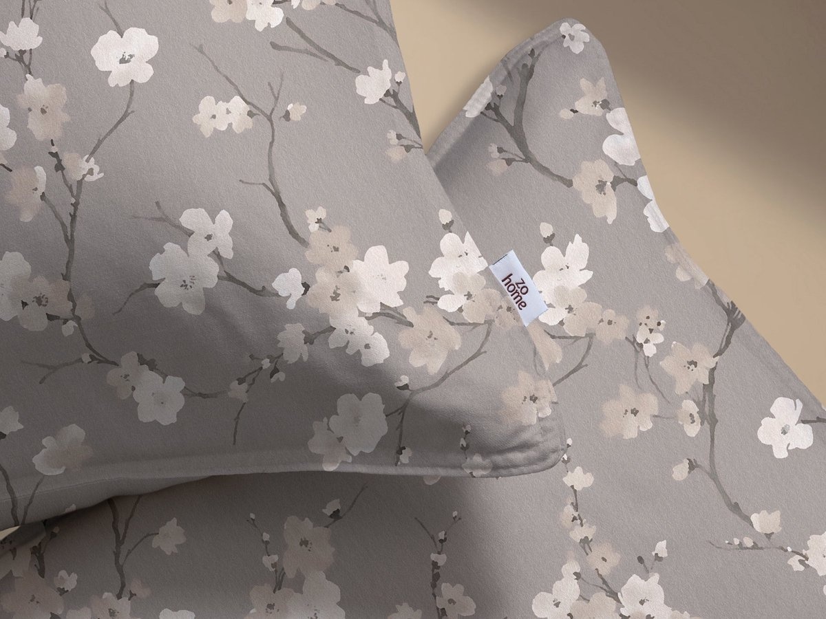 ZO! Home Aria Grijs – elegant bloesem dessin op stijlvol grijs dekbedovertrek