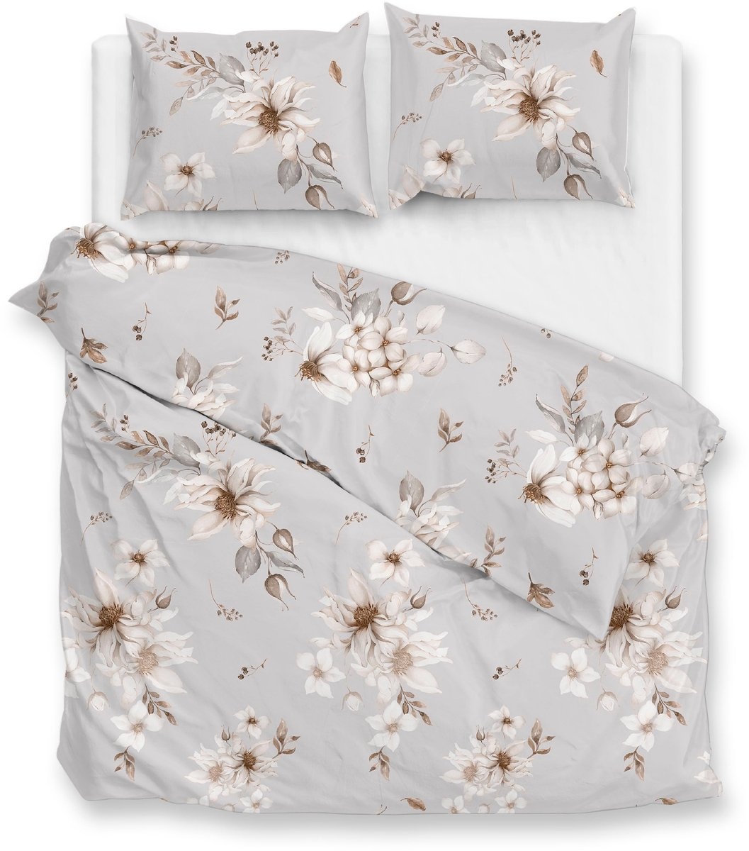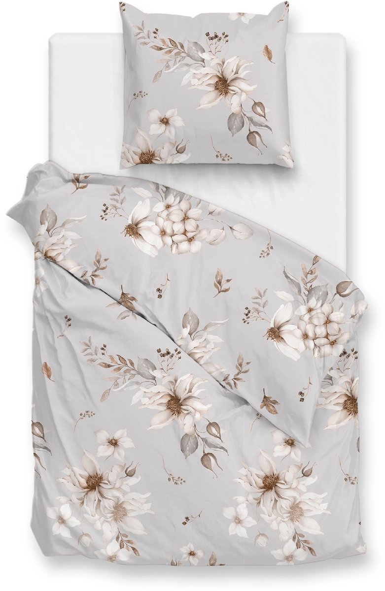 ZO! Home Elara Grijs – elegant bloemen dessin op stijlvol flanel dekbedovertrek