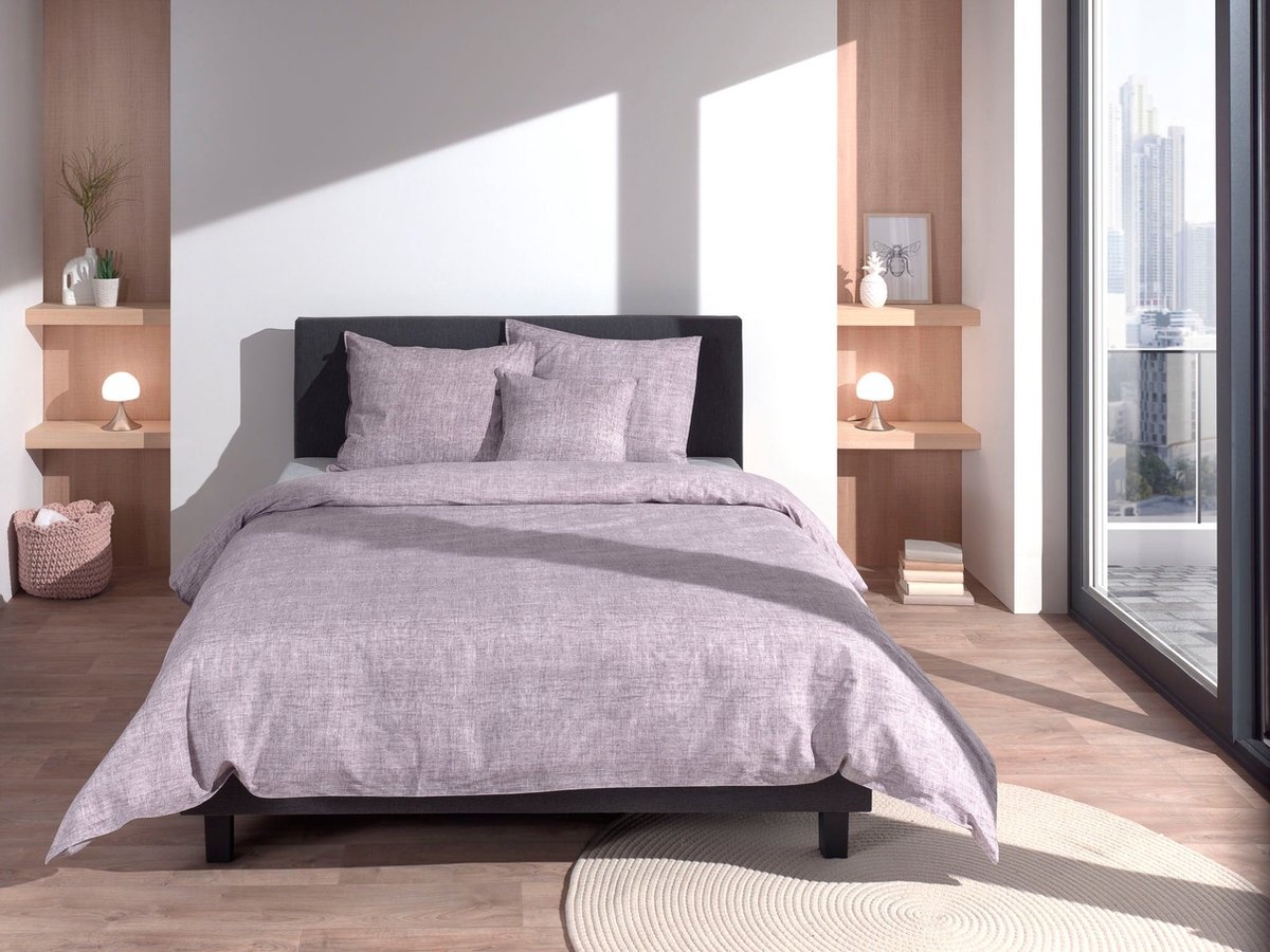 De diepe paarse kleur in combinatie met de subtiele linnenlook geeft het bed een stijlvolle en elegante uitstraling.