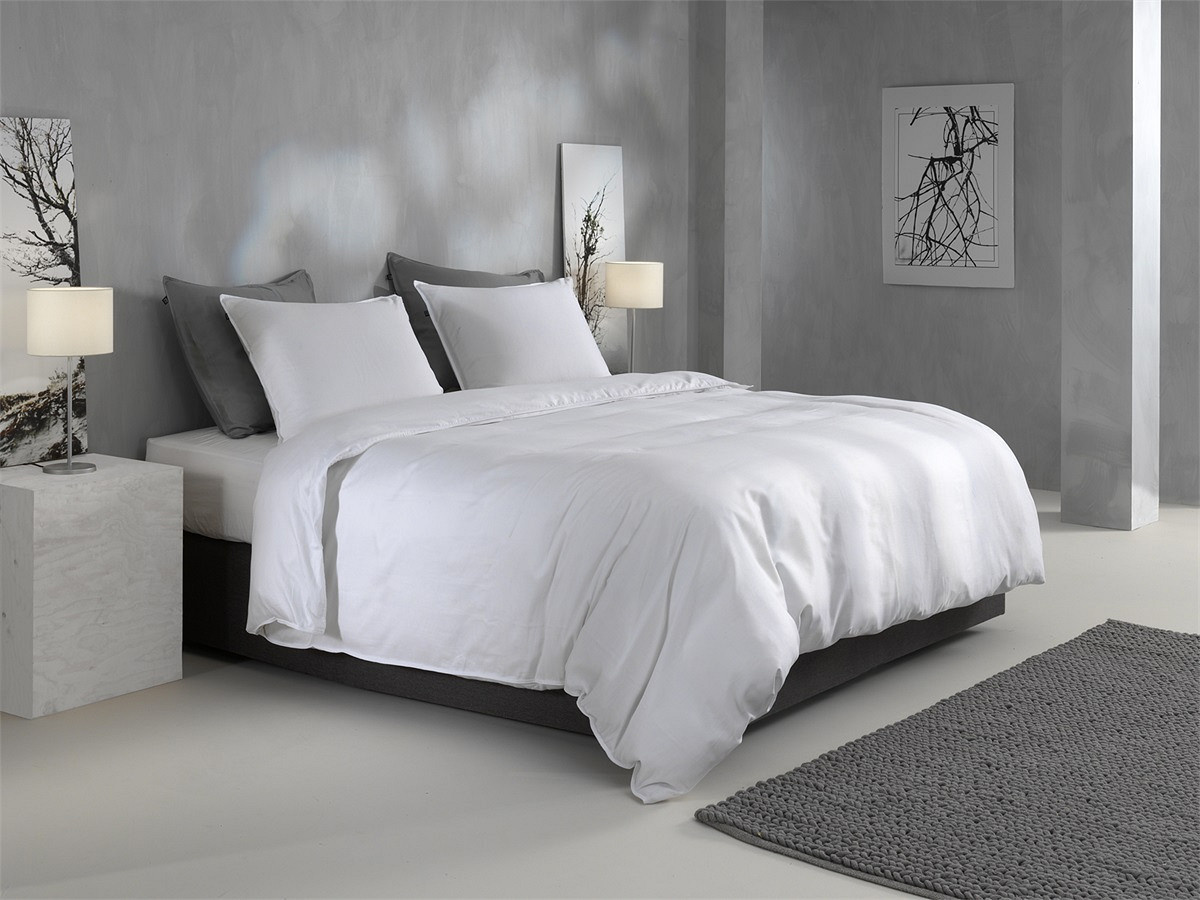 De effen uitvoering laat de subtiele glans van het hoogwaardige katoensatijn dekbedovertrek volledig tot zijn recht komen. Hierdoor krijgt het bed een luxe hoteluitstraling met een zachte, verzorgde finish.